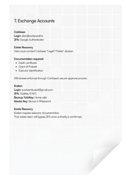 If the unthinkable happens, your heirs aren’t left searching in the dark. The schedule offers detailed guidance and recovery instructions bespoke to your wallet stack.